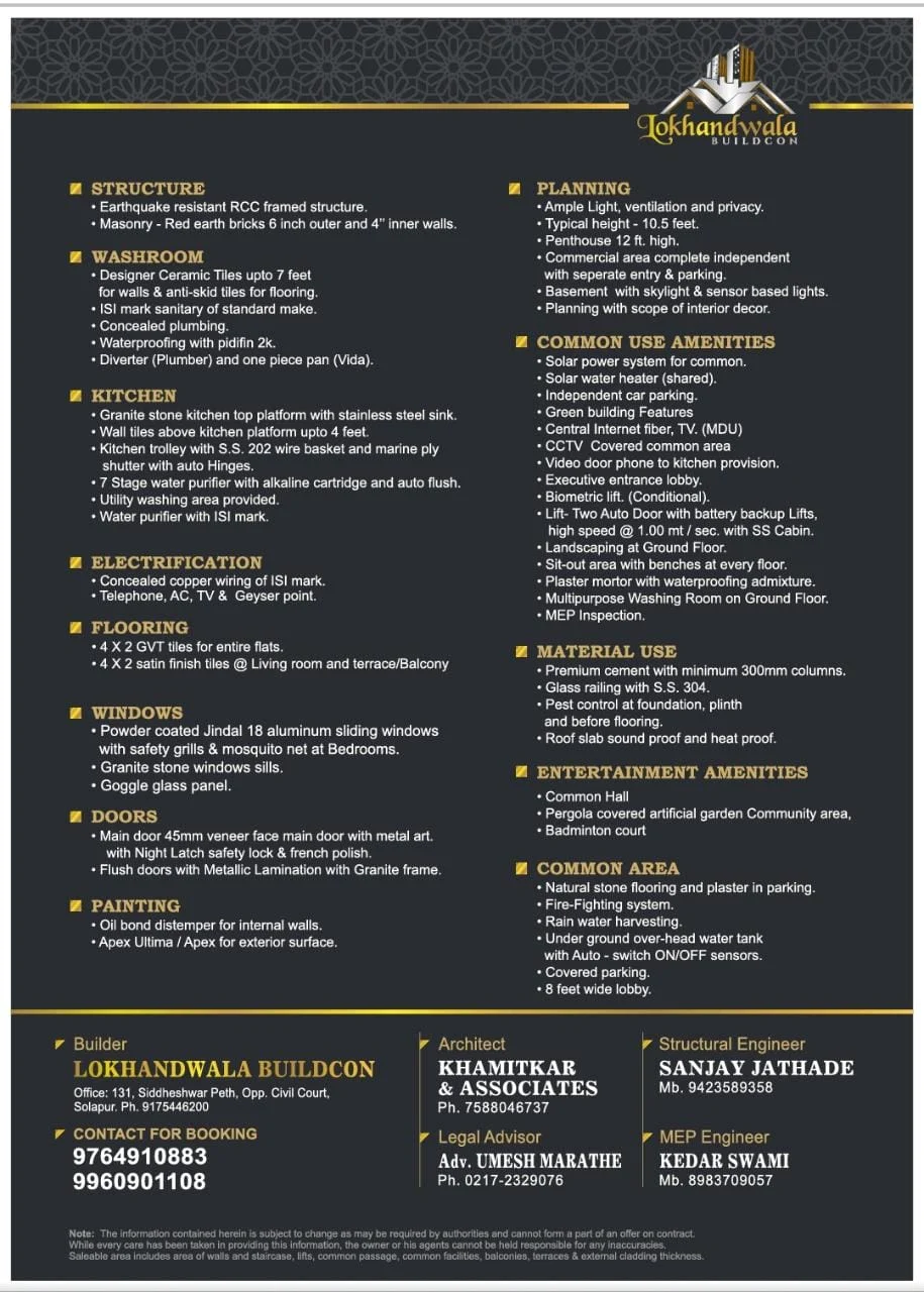 Lokhanwala Group is a progressive 21st century real estate developer since 1999, based in Solapur (Maharashtra). Well poised to redefine professionalism, the Lokhandwala Group is all set to bring about a positive transformation in the way people play, live and work. The Group has emerged as one of the fastest growing real estate companies in Solapur and is one of the most multi-faceted real estate and land procurement entities in Solapur city.